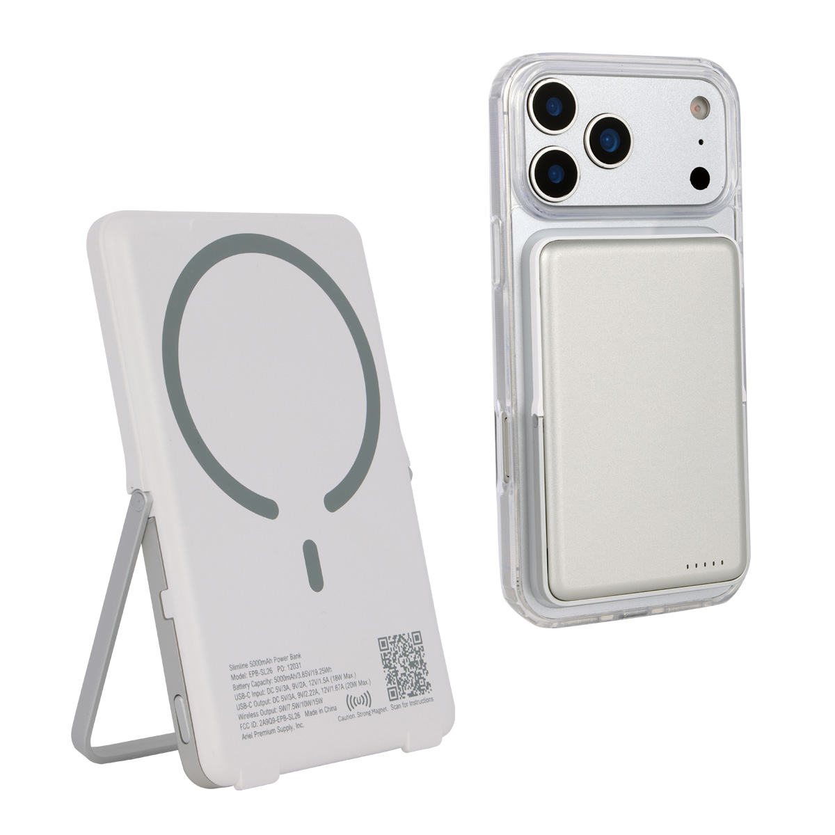 5000mAh 20W PD Aluminum Power Bank with 15W Magnetic Wireless Charger & Stand