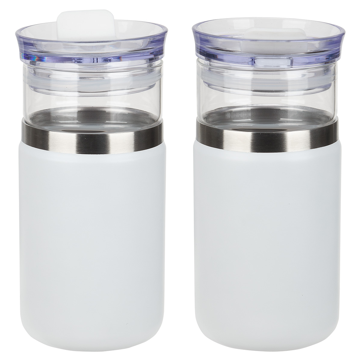- 2-in-1 design allows for use as a 12 oz glass tumbler or 11 oz insulated tumbler