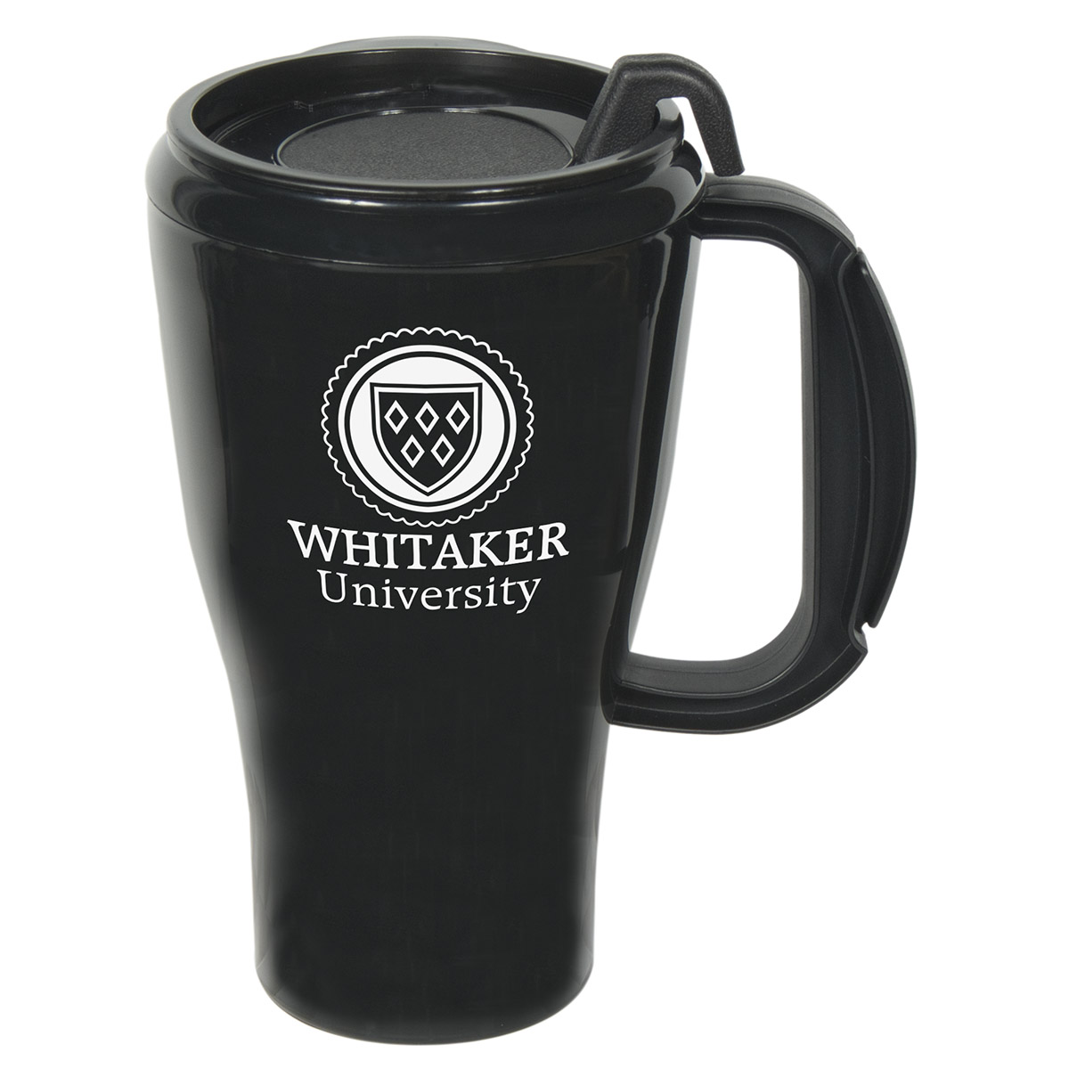 - Black lid has sip-through, thumb-slide lid for convenient opening and closing