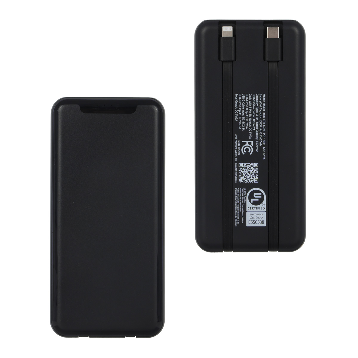 Squire 10000mAh UL Listed Power Bank with Built-In Charging Cables