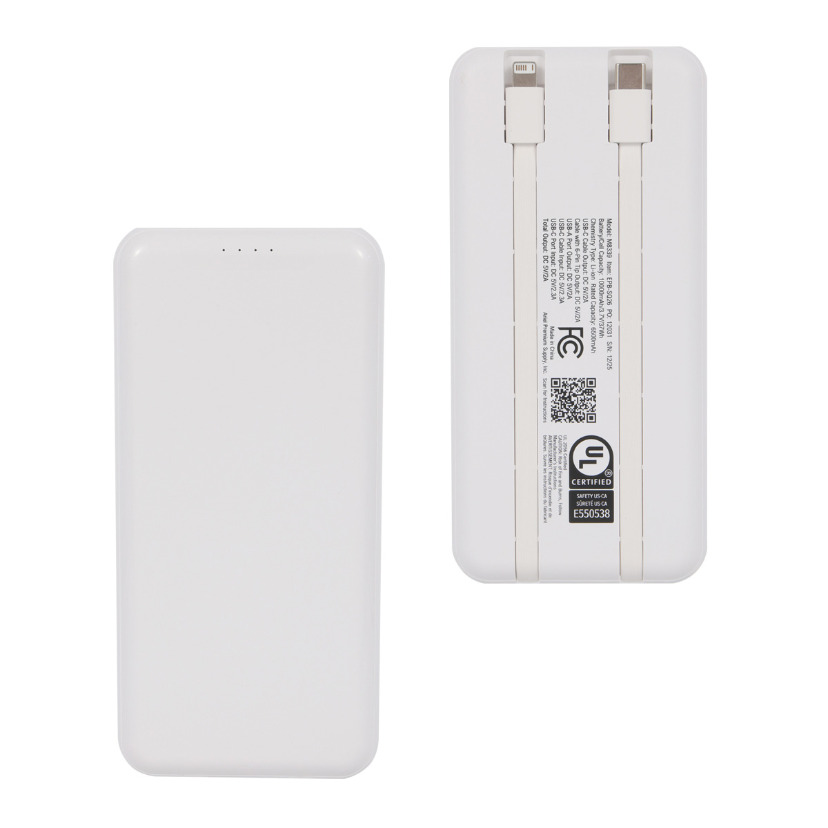 Squire 10000mAh UL Listed Power Bank with Built-In Charging Cables