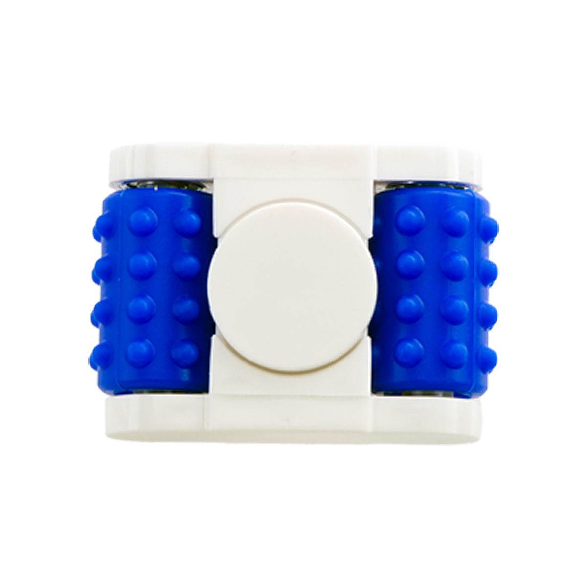 - Dual-function stress reliever combines a massage roller with a smooth-spinning fidget center