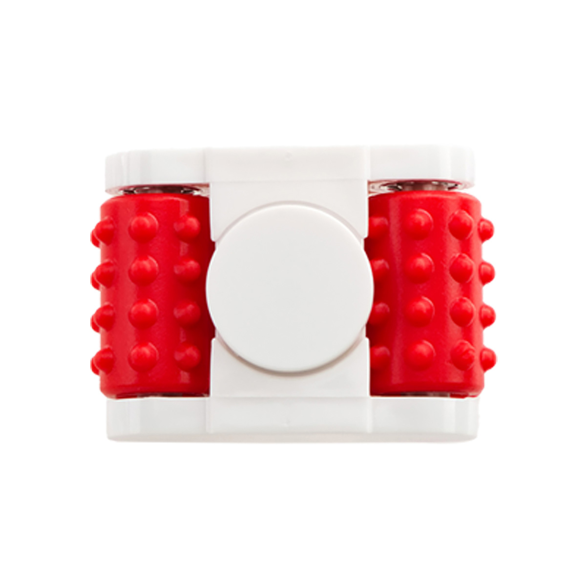 - Dual-function stress reliever combines a massage roller with a smooth-spinning fidget center