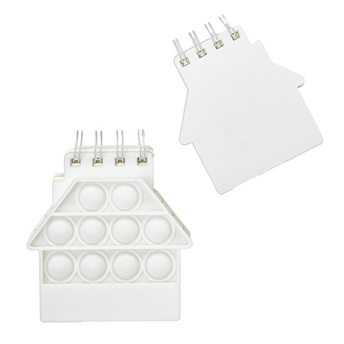 - House-shaped spiral notebook with built-in push pop fidget cover