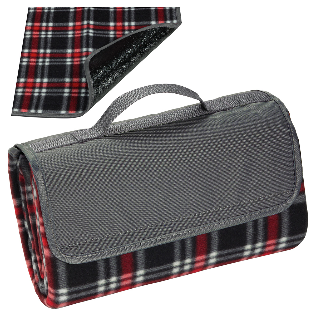 - 100% polyester fleece blanket that rolls up for easy carrying