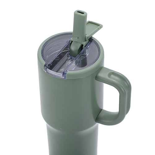 - Screw-on lid with built-in flip-up straw, featuring recycled PP components for reduced plastic impact