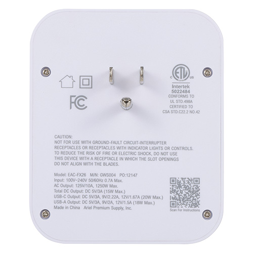 - 3 AC outlets, 1 USB-C port, and 1 USB-A port provide charging for up to 5 devices at once