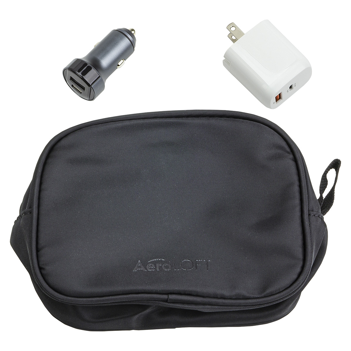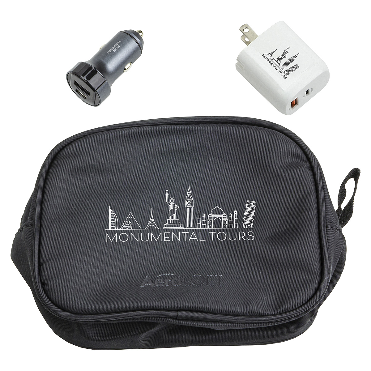 - Convenient travel fast-charging set with tech organizer that can also store small essentials
