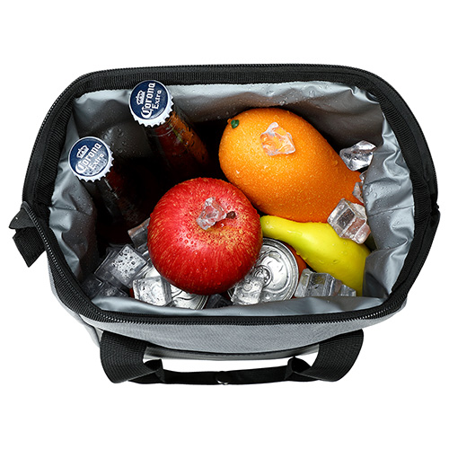 - Spacious main zippered compartment holds up to 12 cans plus ice