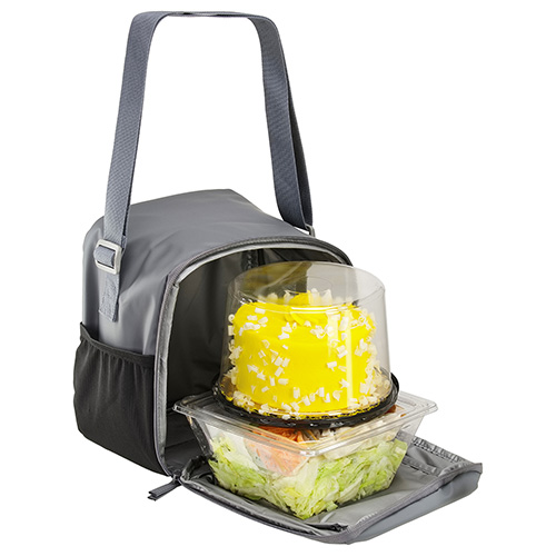 - Features a zippered front pocket for storing utensils, napkins, or small essentials