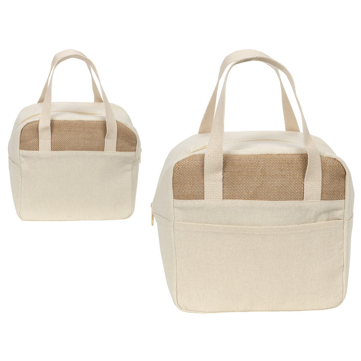 • 200GSM recycled cotton with a decorative jute panel at front and back