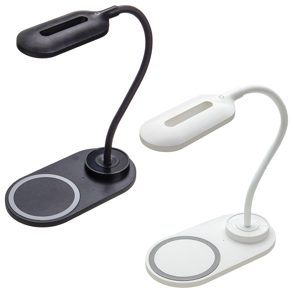 - 15W wireless charger with a soft, durable gooseneck 20 LED desk lamp that is adjustable