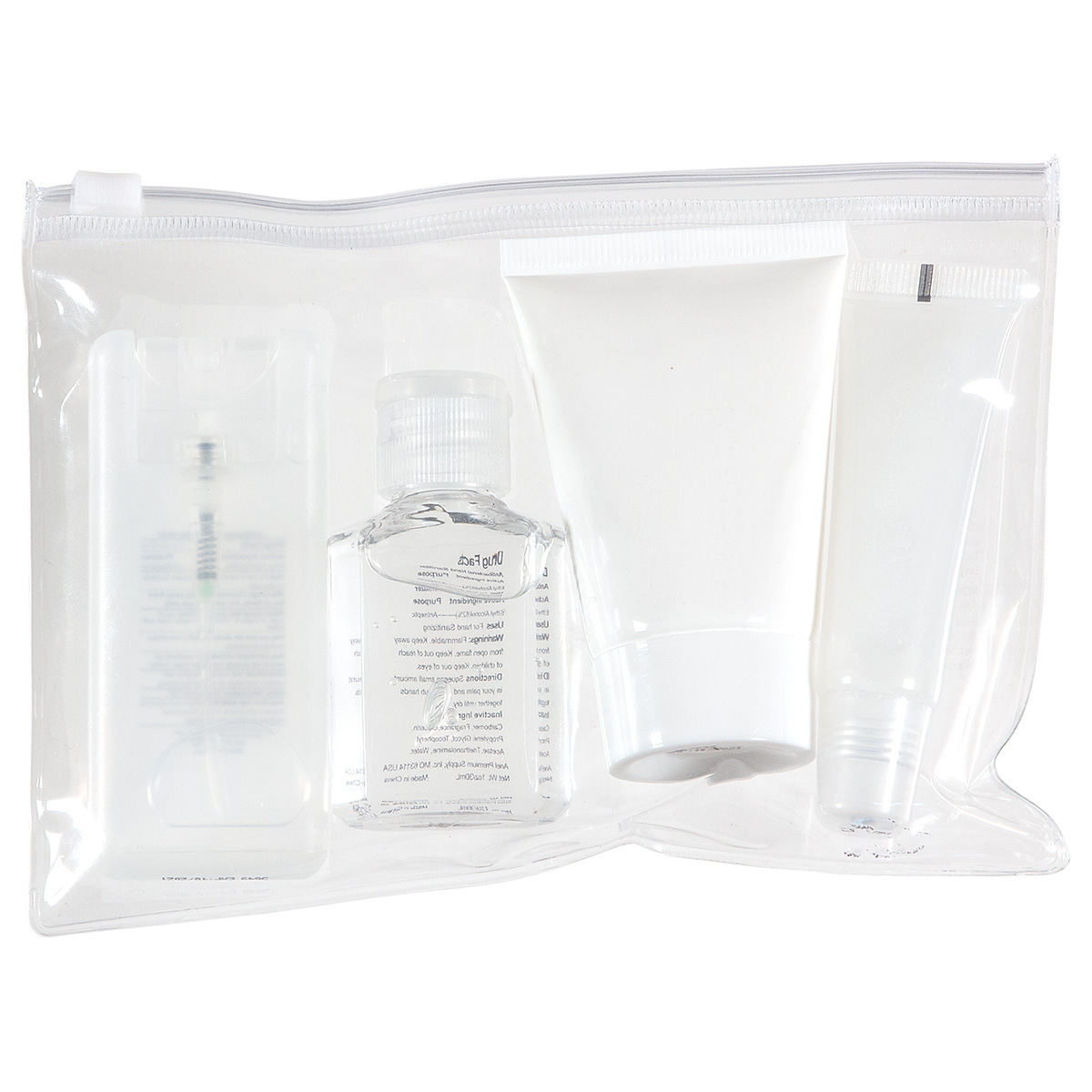 Perfect on-the-go travel kit in a clear, reusable zip-top pouch