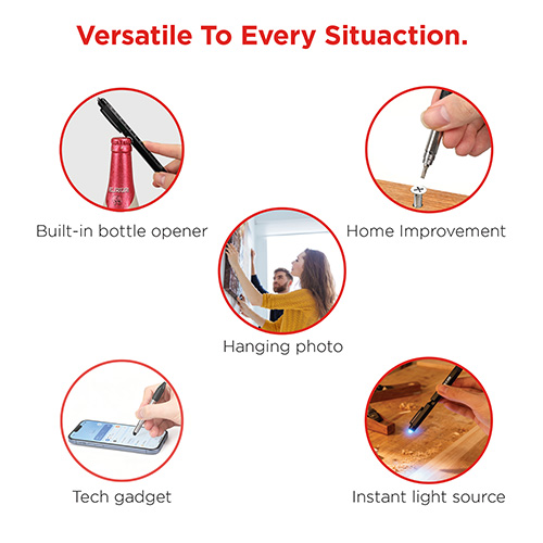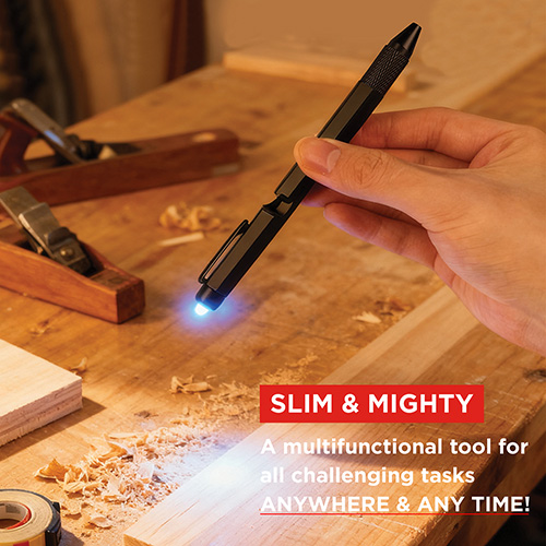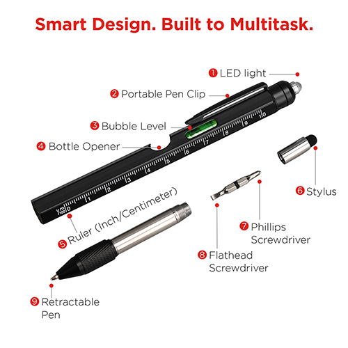 • This compact 9-in-1 multi-tool pen combines essential everyday tools in one sleek, pocket-ready design