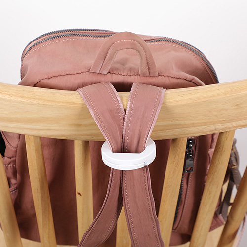 - Anti-theft design keeps bags securely hooked and within sight when placed on desks or tables