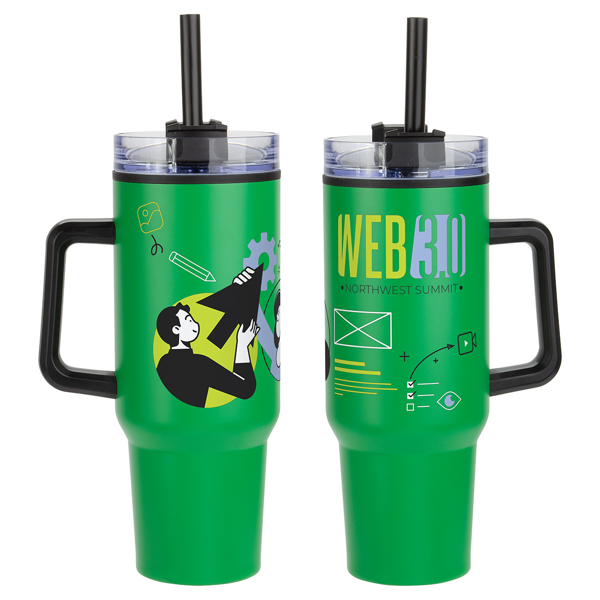 - 3-position swivel top: straw opening, drink opening & covered