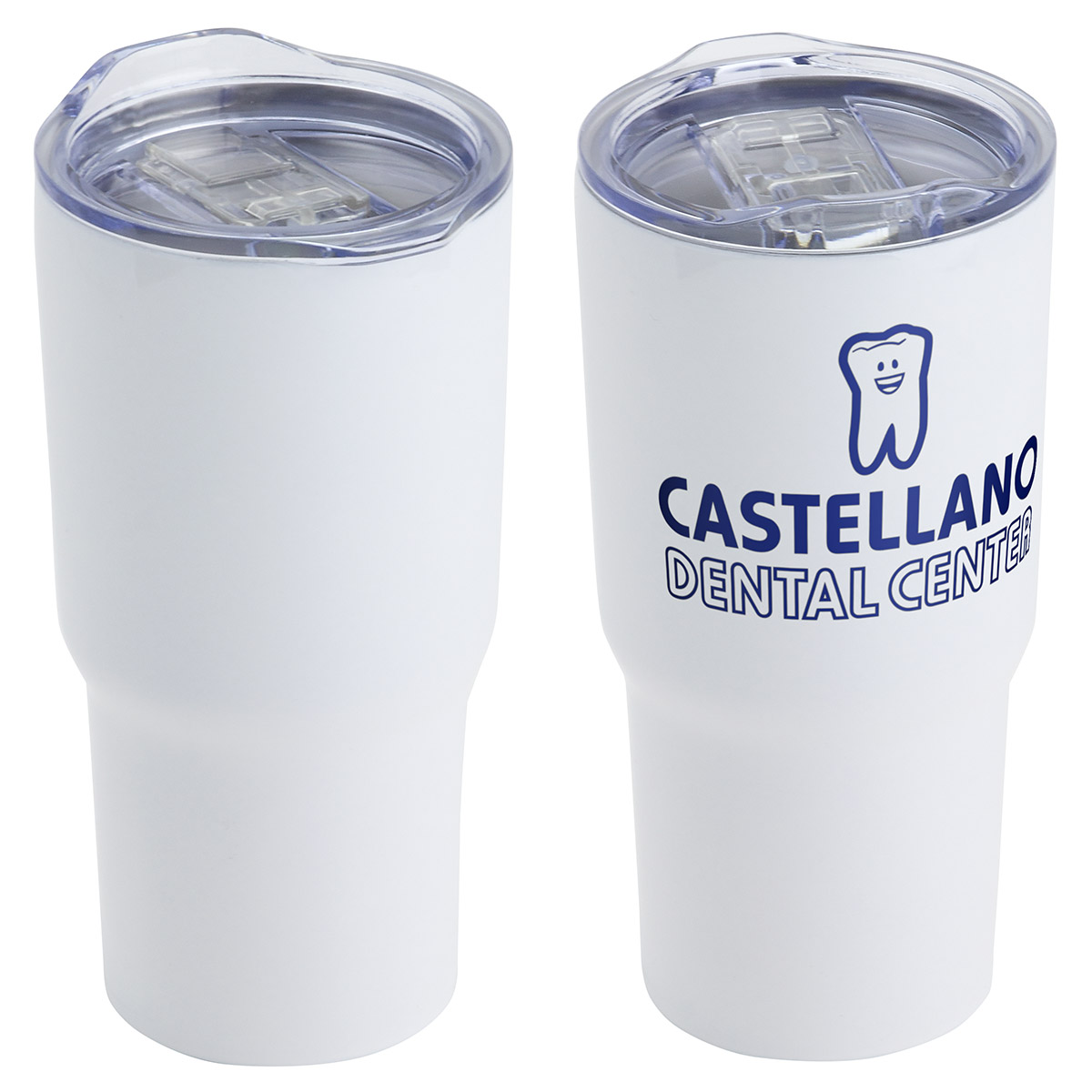 - Clear plastic push-on lid with sliding drink opening