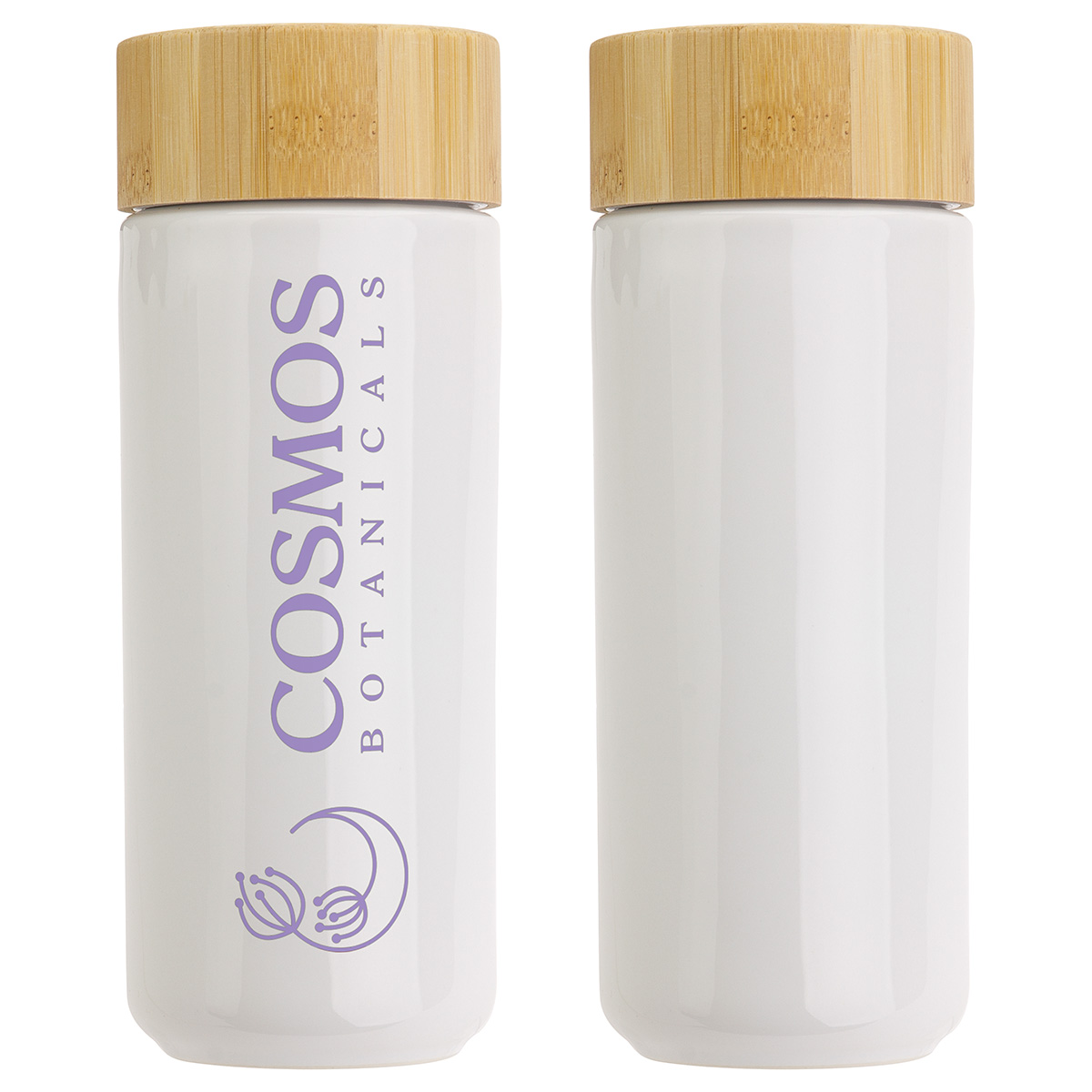 - Large screw-on bamboo lid can be laser engraved or color imprinted