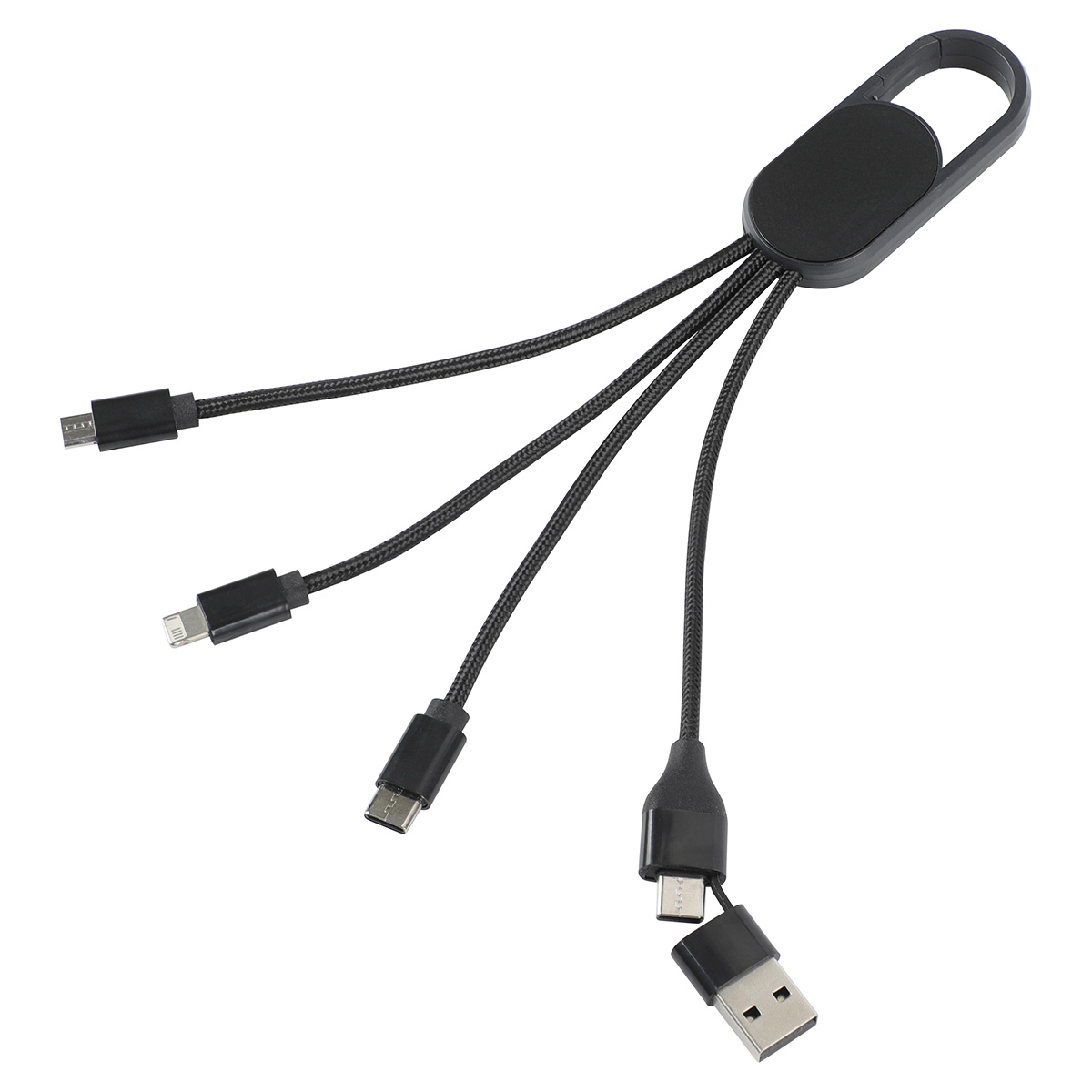 Hex 6-in-1 Light-Up Charging Cable with Carabiner Clip and Recycled Casing