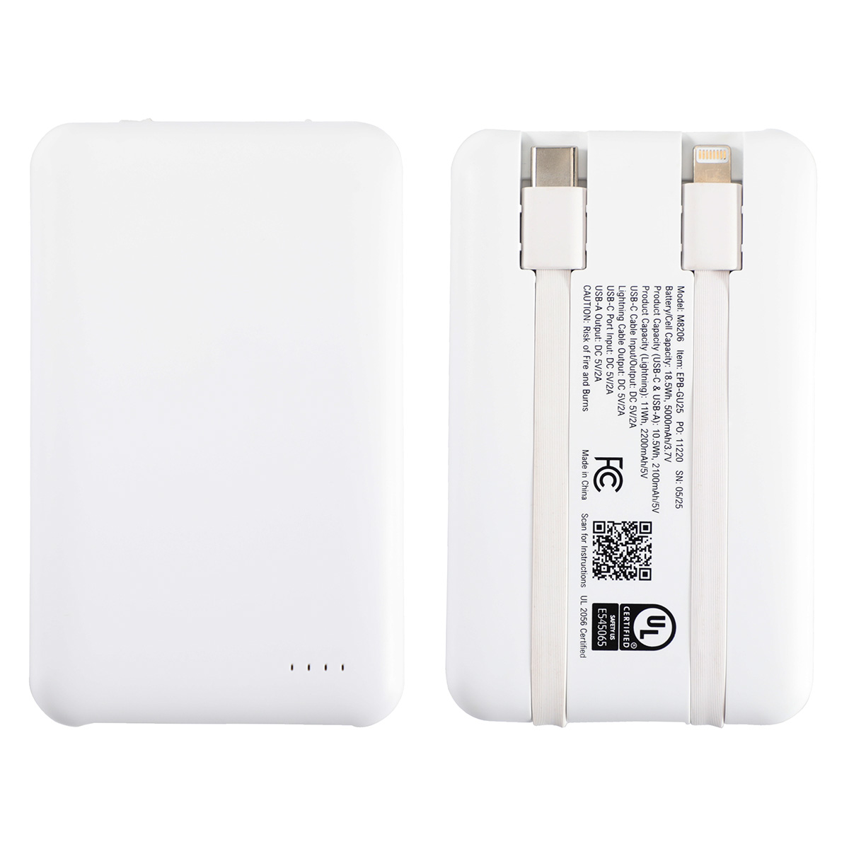 Guild 5000mAh UL-Listed Power Bank with Built-in Cables