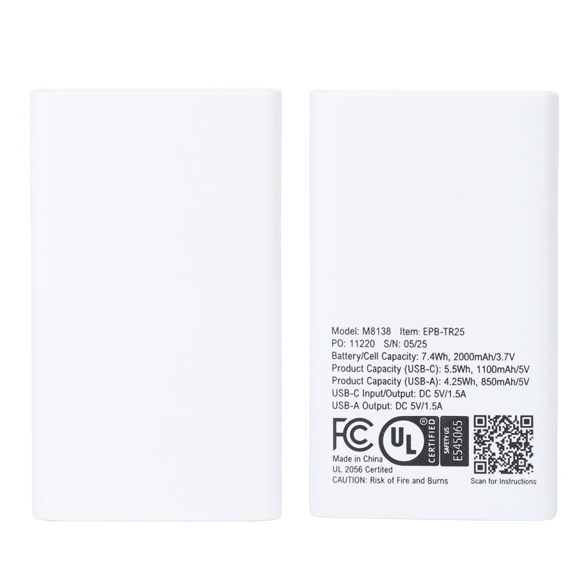 - Compact 2000mAh battery capacity for quick, on-the-go charging