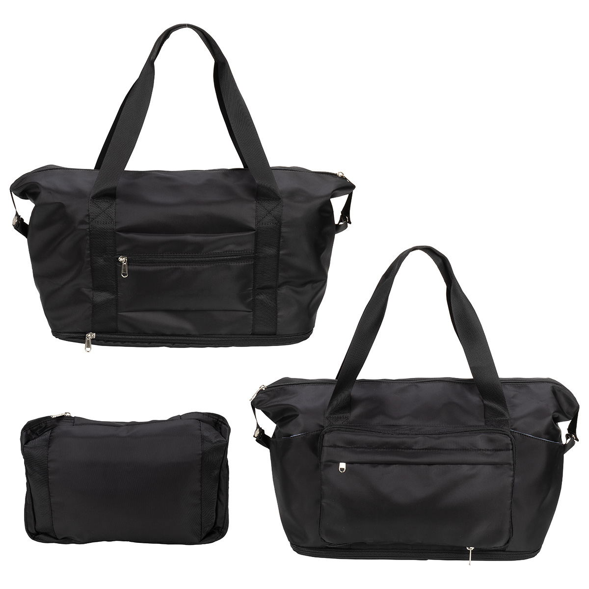 - Fold the tote into the zippered front pocket for compact storage or efficient packing