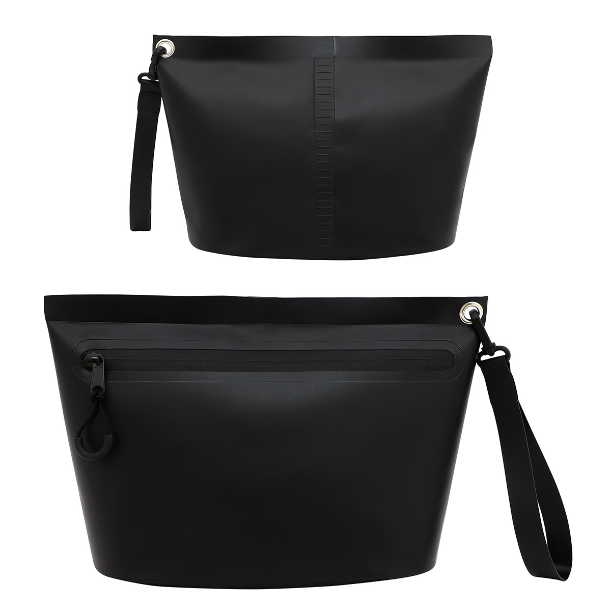 - A functional bag that protects items such as sunscreen, sunglasses, cell phone, credit card or keys from splashed water and sand