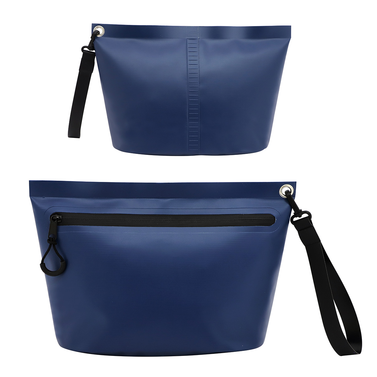 - A functional bag that protects items such as sunscreen, sunglasses, cell phone, credit card or keys from splashed water and sand