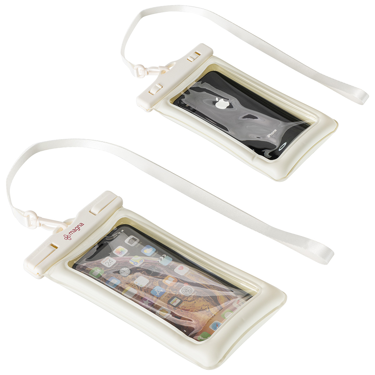 - Dual airbags enable the phone's waterproof pouch to float on water, making it easy to locate at all times