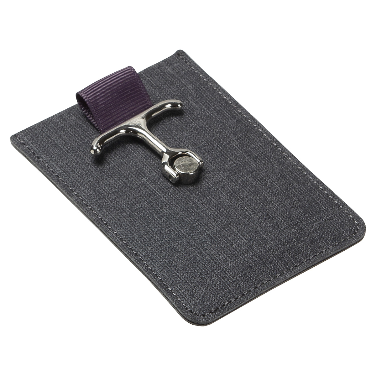 - Metal anchor-shaped finger grip that also acts as a phone stand