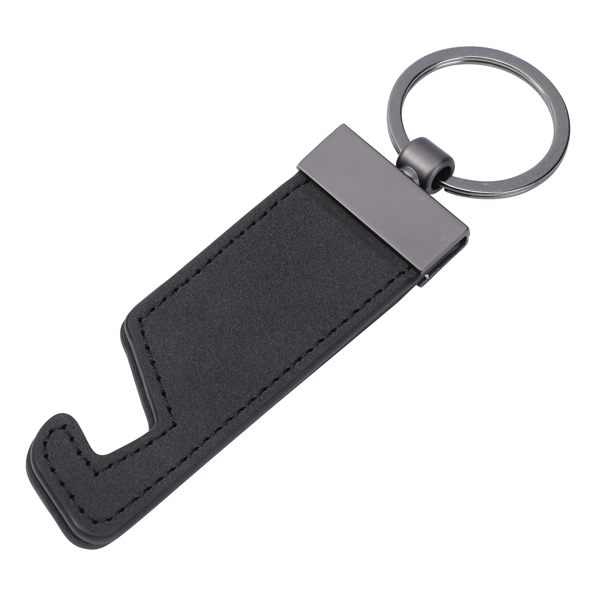 - Soft touch PU design with zinc alloy accent and double split key ring -Two steady wings unfold to prop standard phone in horizontal or vertical position