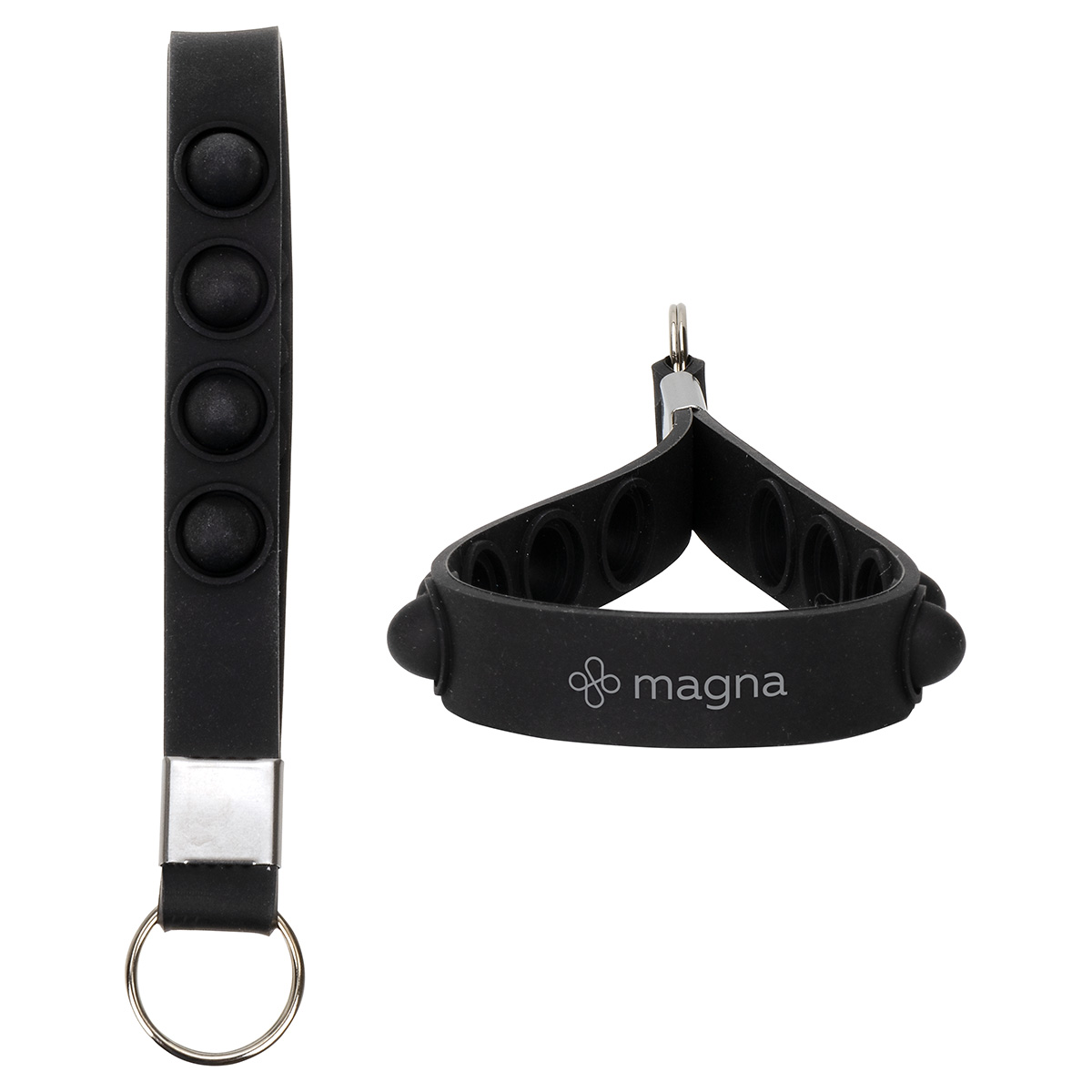 - Combines a stress-relieving pop bubble feature with a practical wristlet for keys and small personal items