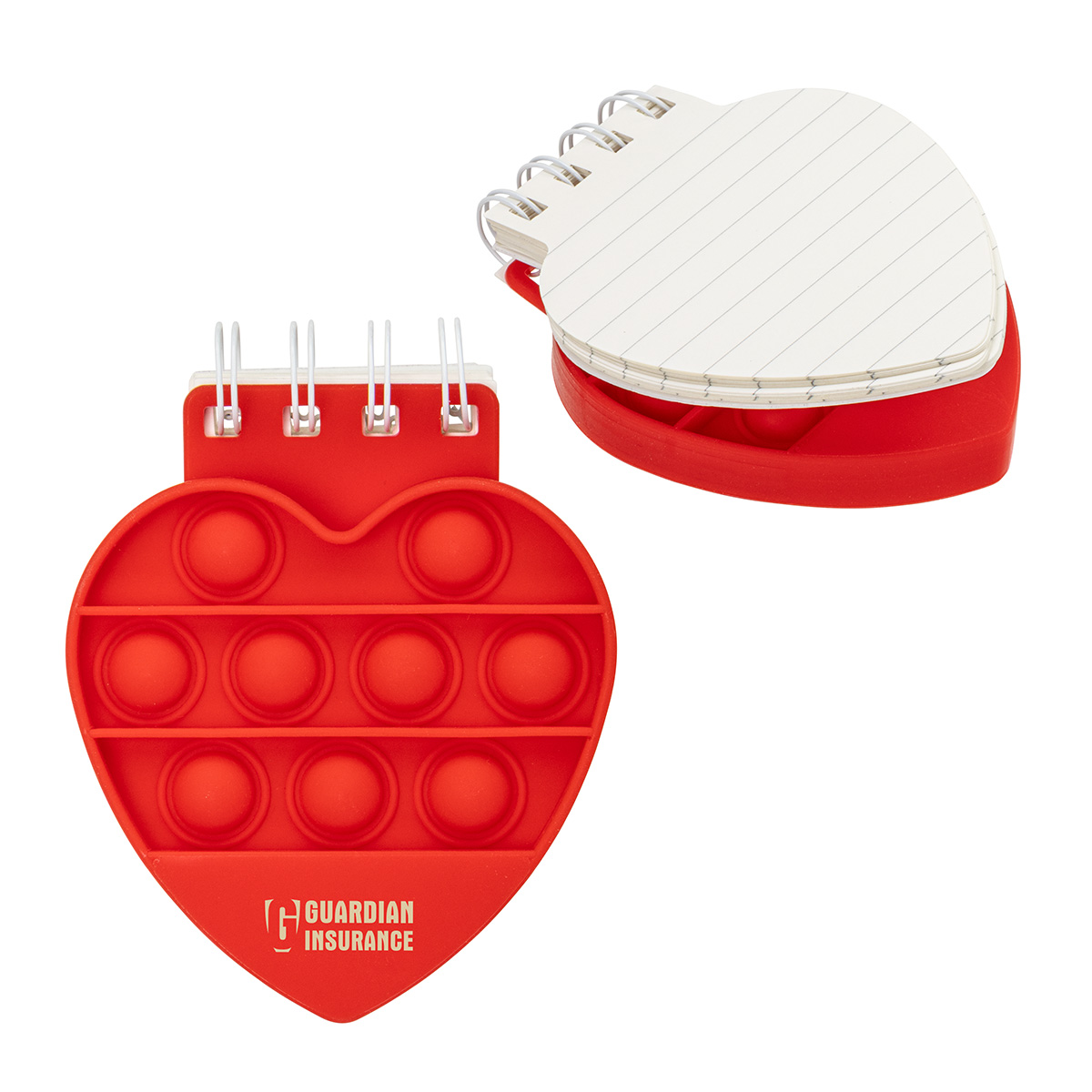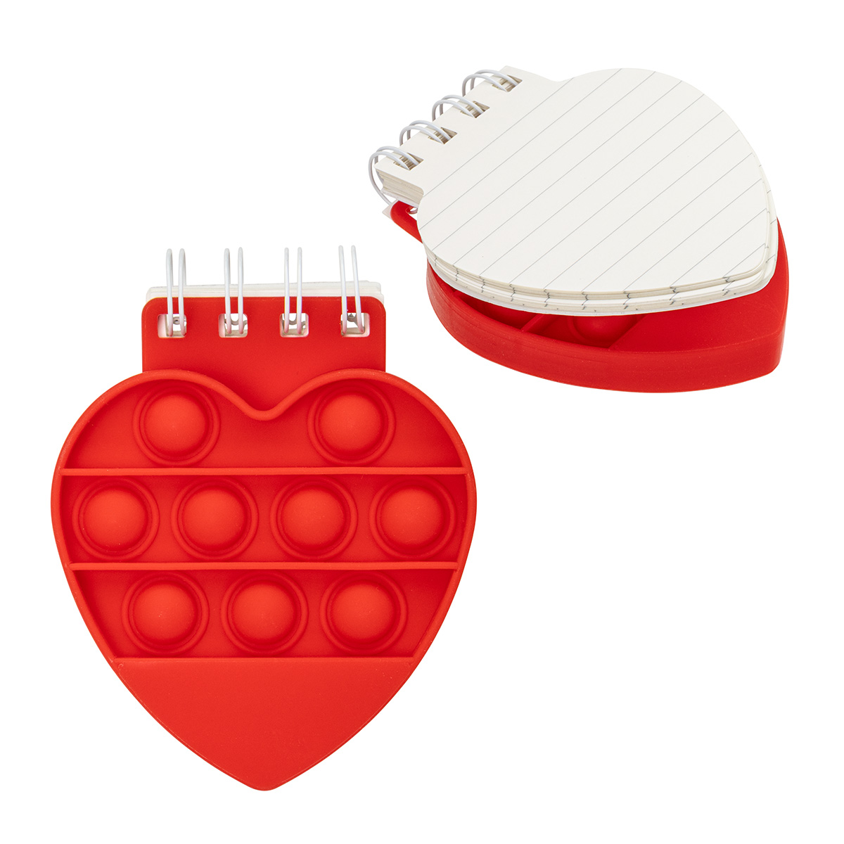 - Heart-shaped spiral notebook with built-in push pop fidget cover