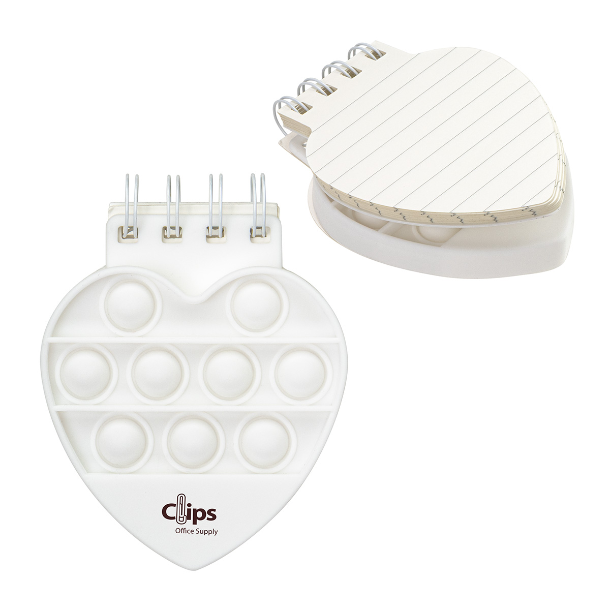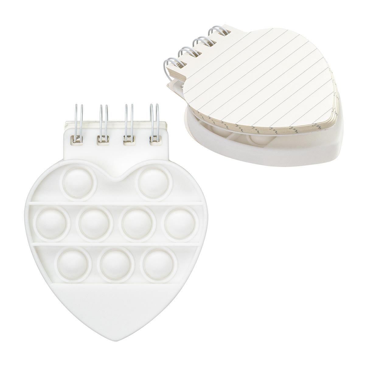 - Heart-shaped spiral notebook with built-in push pop fidget cover
