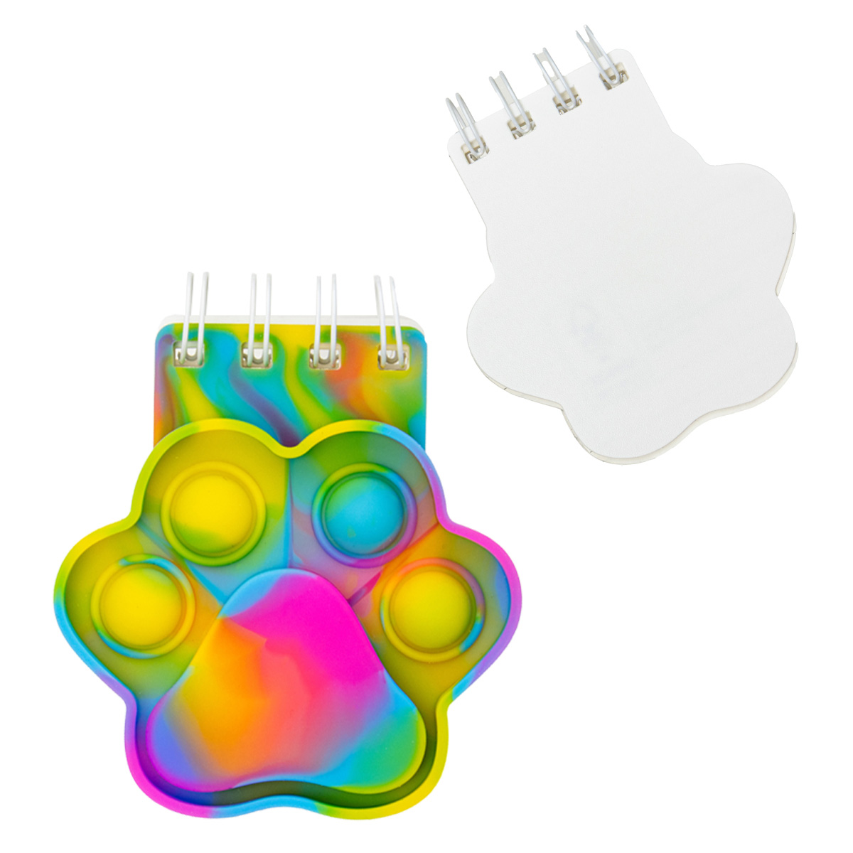 - Paw-shaped spiral notebook with built-in push pop fidget cover