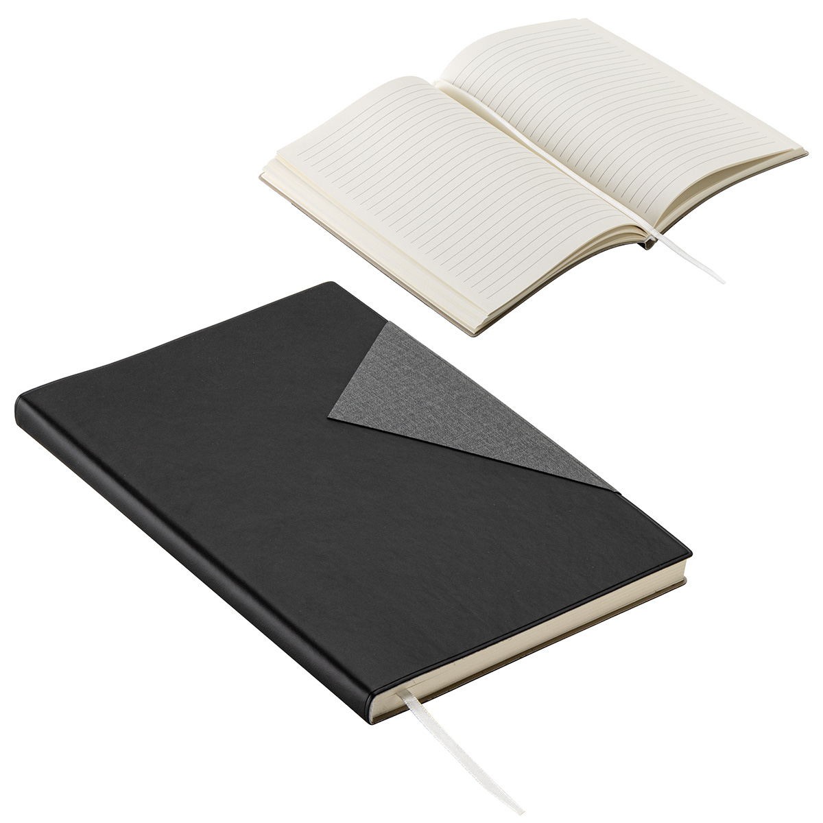- PU hard-bound, two-tone stitched cover with decorative two-tone triangle design