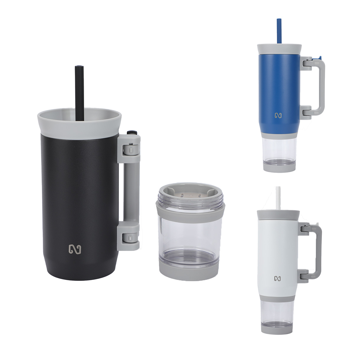 NAYAD® Quest 23 oz Stainless Steel Double-Wall Mug with Foldable Handle & Snack Cup