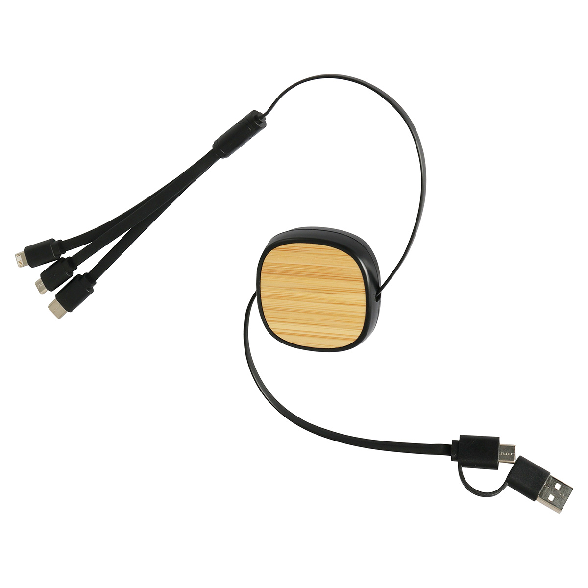 Bamboo Retractable 3-in-1 Charging Cable with Dual Inputs