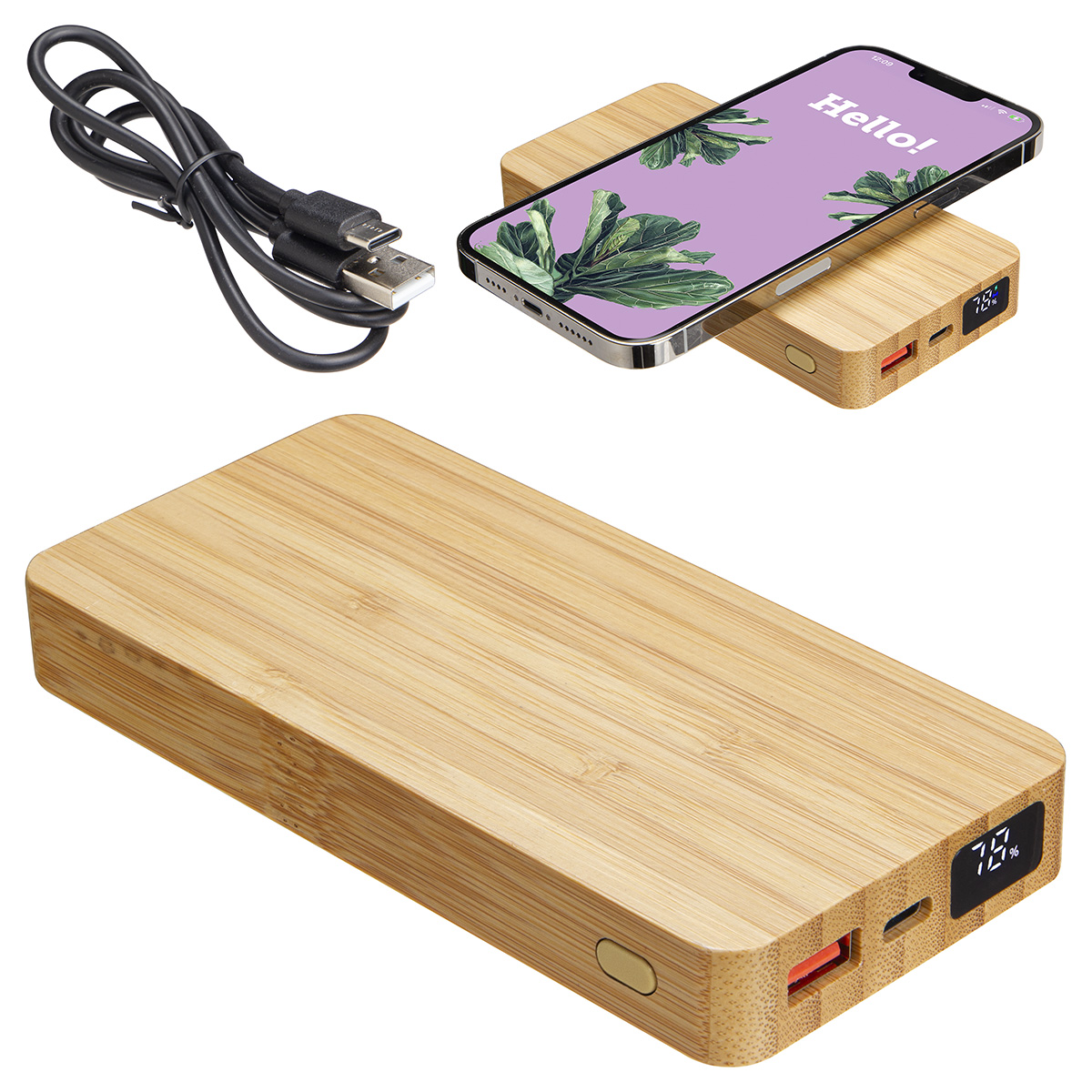 Bamboo 10000mAh Dual Port Power Bank with 10W Wireless Charger