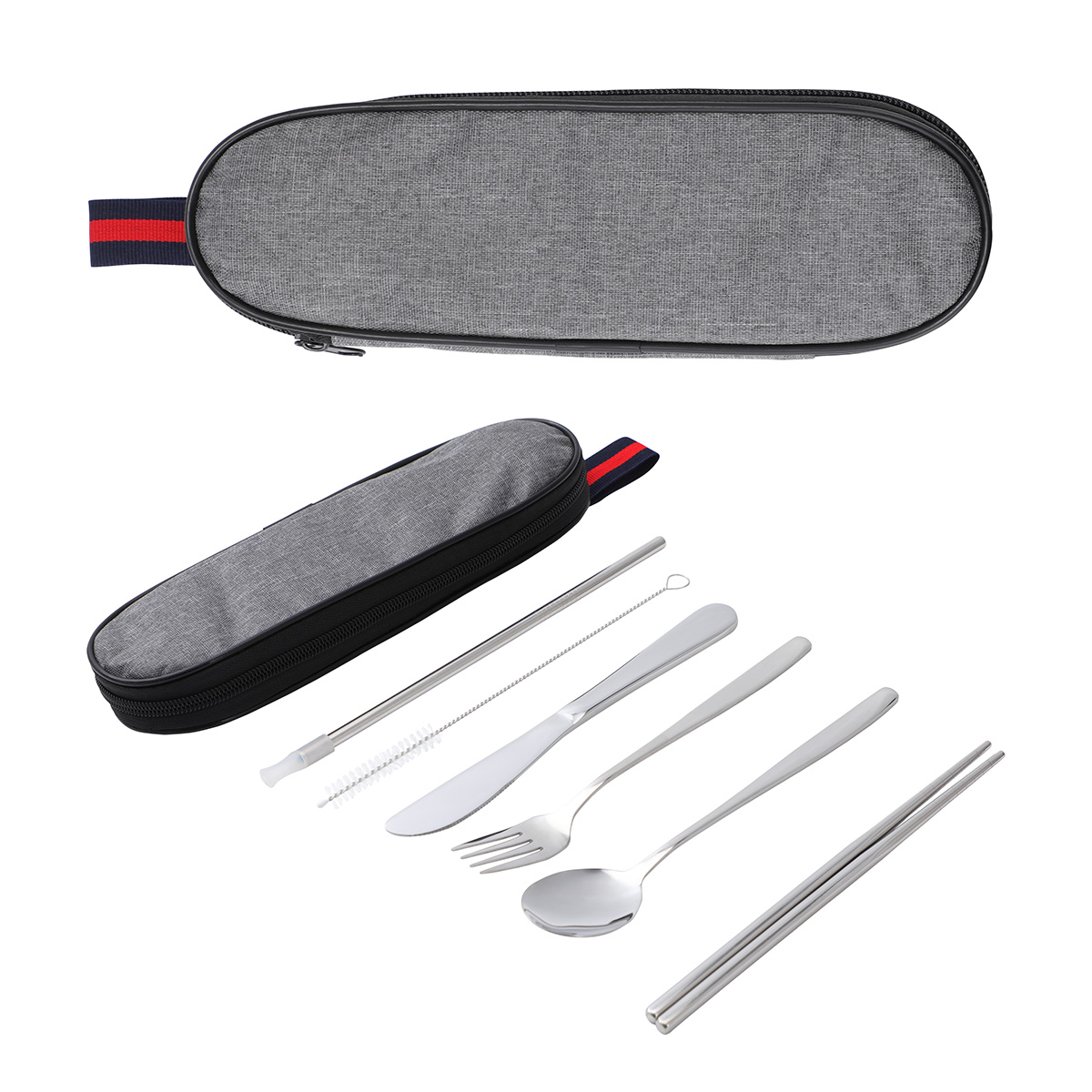 • Includes a reusable stainless steel knife, spoon, fork, chopsticks, straw, and straw cleaning brush for everyday dining