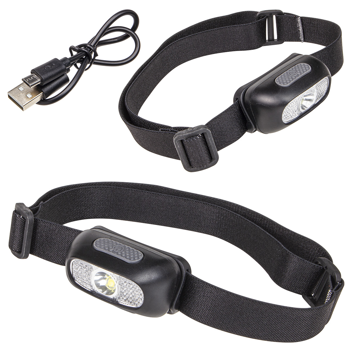 - Rechargeable headlamp with adjustable elastic headband